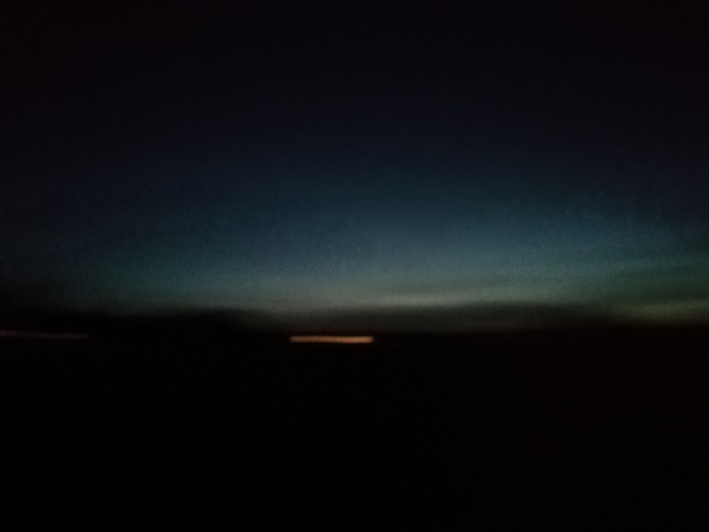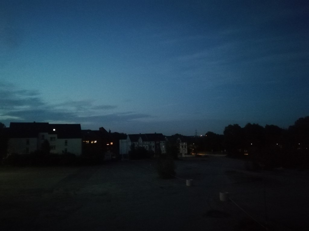 „The lights in the distance are beautiful“, I tell my witch as we sit down on one of our fields and drink a hot chocolate.