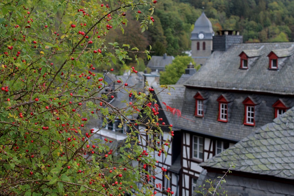 The small town I‘m talking about here is called Monschau. It can be found in the west of Germany, very close to Belgium. To tourists of that region it may already be known for its spots around the river floating through its center. The “Rur”. And they are truly beautiful! But the most beautiful thing about them is how long they have survived! Tourist information sites like to mention that a hotel in a building originally built in 1586 can be booked!