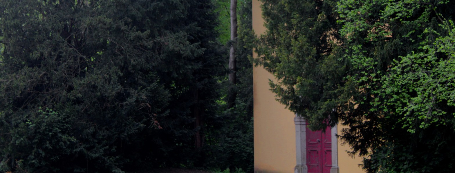 I found it close to the castle of Benrath in Düsseldorf, Germany. It is just a wall with a door, reminding of the medieval castle that once stood here but was lost in history.