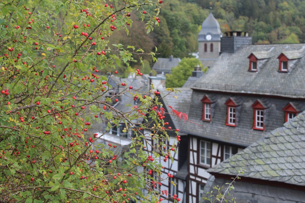 Sadly, in the last years my own autumn tradition has included nothing of the above, and I am gonna change that. But for me, autumn meant visiting my favourite medieval town in this area, Monschau. It is an hour long ride by car that leads so wildly through the mountains that I battle motion sickness a lot each time, but it is always worth it. The hills around look dramatic in autumn colours. They let the little witching houses and the castle ruins around look so much more dramatic.