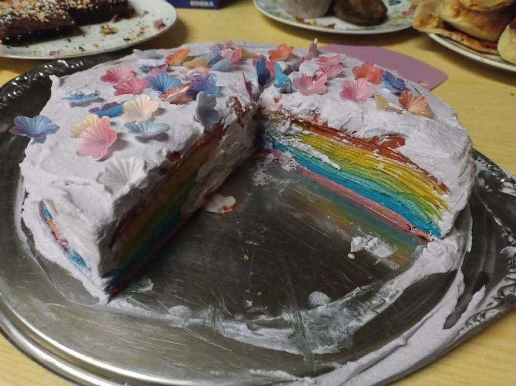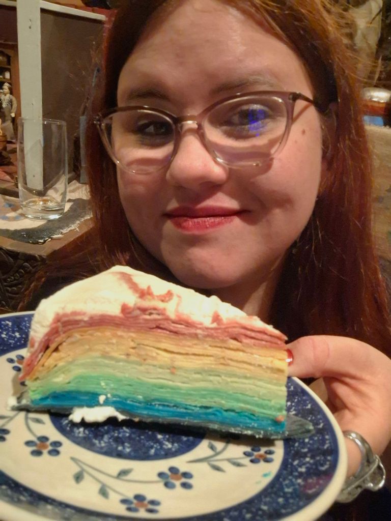 New witchy posts within this week. Promise! Until then, enjoy these images of my favourite cake! Rainbow crepes cream cake! Yay. It’s probably the main reason Layla keeps up with my shit.