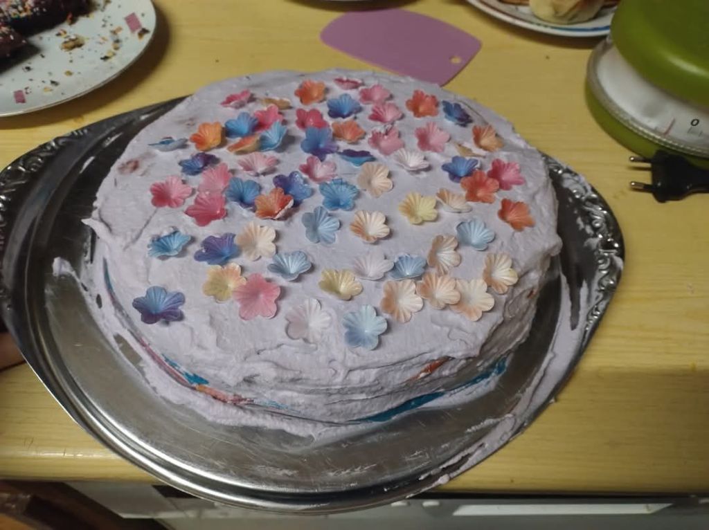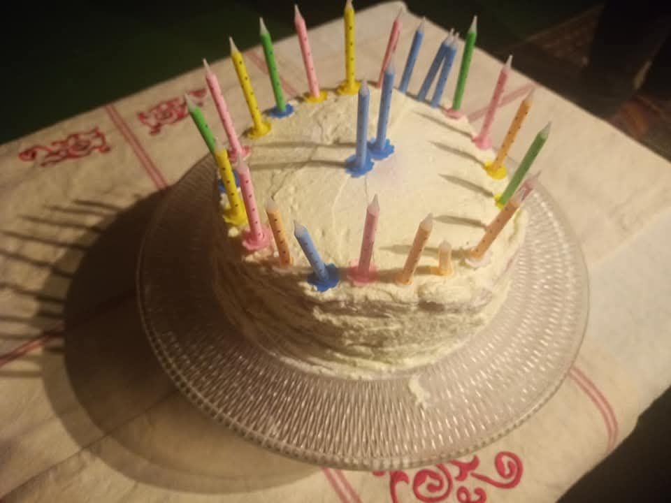Colourful birthday cake! I think you should aim for a layer for each year, at each birthday…!