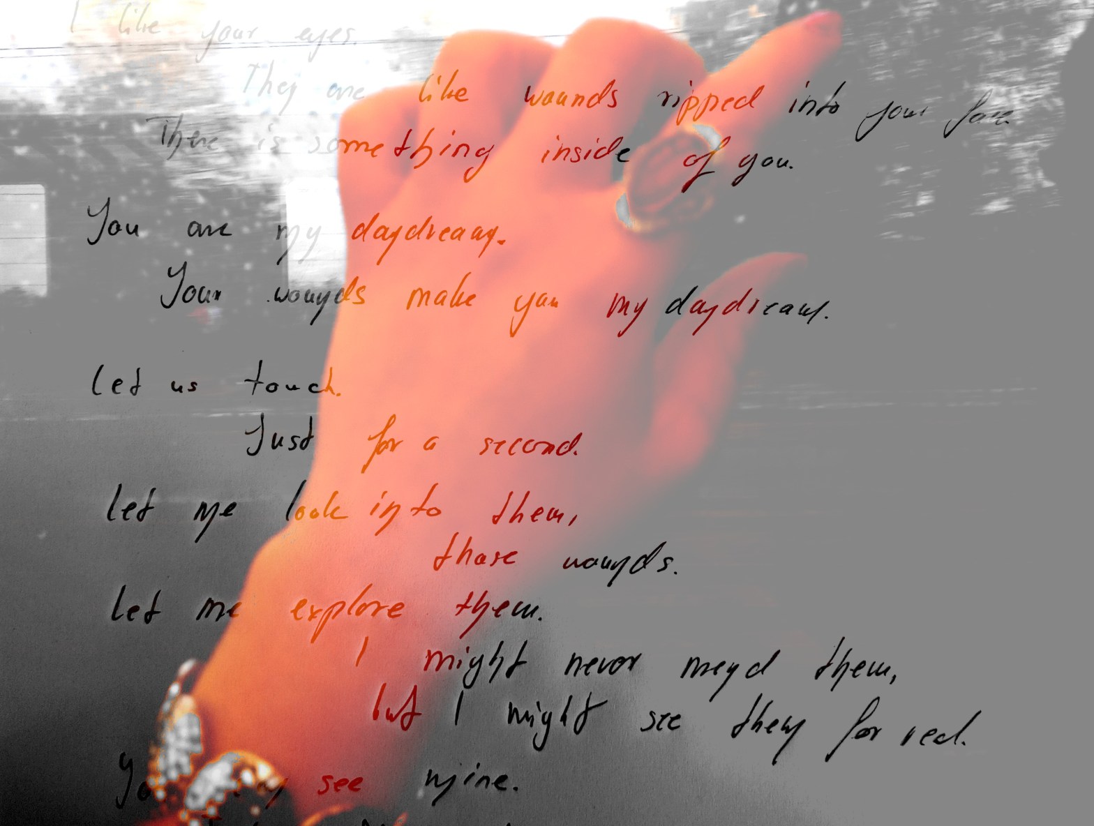 „Something has been lost“, I say to my witch. „Something that has been just as essential as food and rest, and I‘m still expected to function.„Just stop functioning“, Layla says and eats her violet cloud. I am certain that I already have. I have been through months of screaming at night on a field, andContinue reading “Caught in candy”